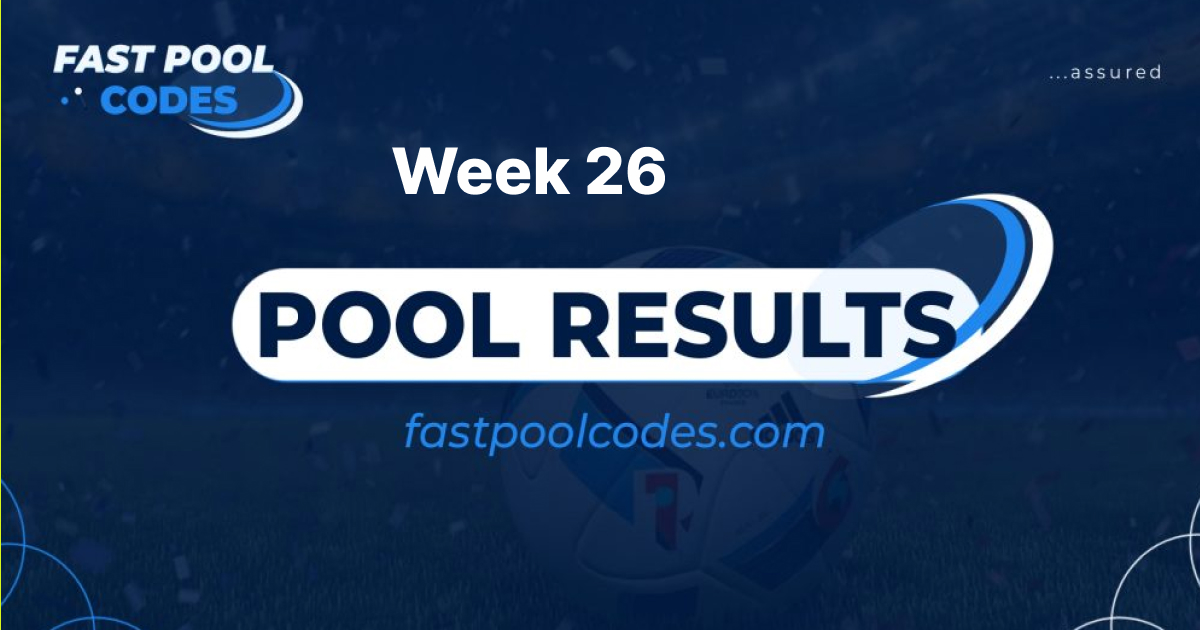 The complete pool results for last week’s pool have been published on our website. You can check and confirm all the week 26 UK Pool results.
